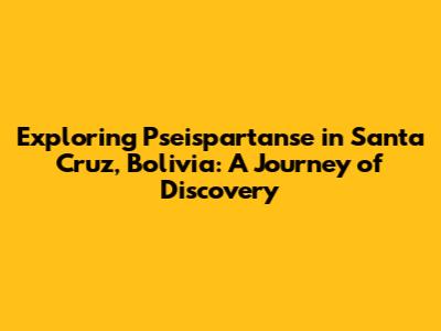 Hey guys! Ever heard of Pseispartanse? Maybe not, but if you're into unique travel experiences, this is something you'll want to know about. This article will be your guide, diving deep into what makes Pseispartanse special, with a focus on its presence in Santa Cruz, Bolivia. We're going to explore the area, see why it's a must-visit, and give you all the juicy details to plan your own adventure. So, buckle up, because we're about to embark on a virtual tour of this fascinating place!