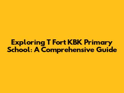 Exploring T Fort KBK Primary School: A Comprehensive Guide