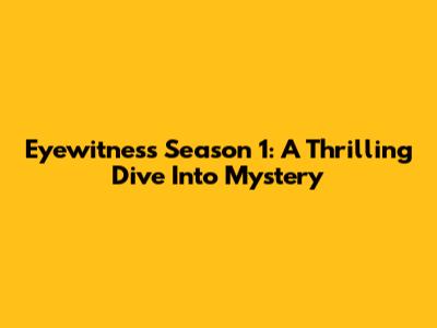 Eyewitness Season 1: A Thrilling Dive Into Mystery