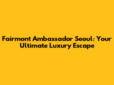 Hey guys! Are you ready to experience the pinnacle of luxury in the heart of Seoul? Let's dive into everything that makes the Fairmont Ambassador Seoul an unforgettable destination. From its stunning architecture and world-class amenities to its impeccable service and prime location, this hotel is more than just a place to stay—it's an experience. Whether you're a seasoned traveler or planning your first trip to Seoul, get ready to discover why the Fairmont Ambassador Seoul should be at the top of your list.