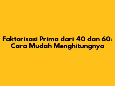 Faktorisasi Prima Dari 40 Dan 60: Cara Mudah Menghitungnya