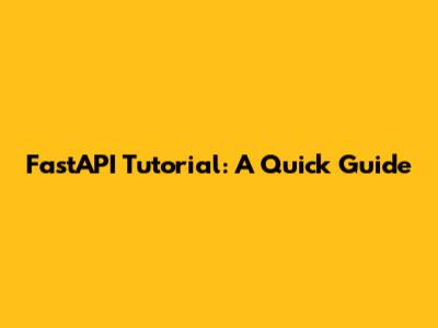 FastAPI Tutorial: A Quick Guide