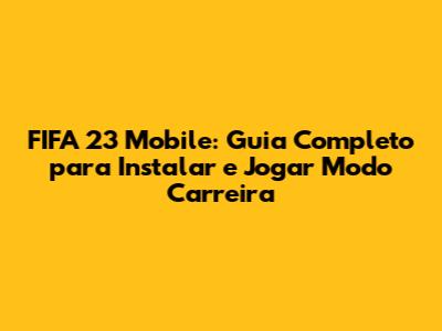 FIFA 23 Mobile: Guia Completo Para Instalar E Jogar Modo Carreira