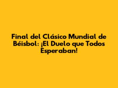 Final Del Clásico Mundial De Béisbol: Todo Lo Que Necesitas Saber