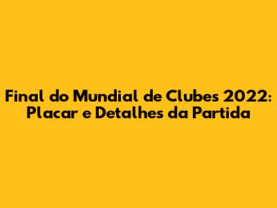 And now, the moment you've all been waiting for! The placar da final do mundial de clubes 2022! The final score tells the definitive tale of the match, it is the bottom line, the ultimate answer to the question of who triumphed and who fell short. But remember, the score is just the end result. Before we reveal the score, remember all the work, all the sweat, and all the tactics that led to this moment. The final score is the product of everything we've talked about earlier: the players, the managers, the strategies, the key moments, and the dramatic twists and turns of the game.