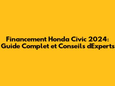 Financement Honda Civic 2024: Guide Complet Et Conseils D'Experts
