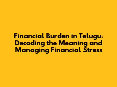 Financial Burden In Telugu: Meaning & How To Manage It