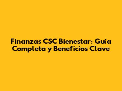 Finanzas CSC Bienestar: Guía Completa Y Beneficios Clave