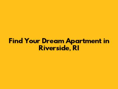 Find Your Dream Apartment In Riverside, RI