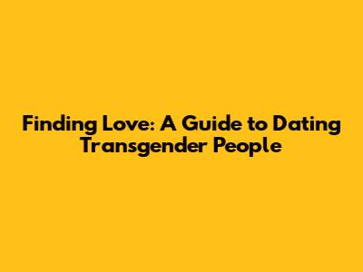 Finding Love: A Guide To Dating Transgender People