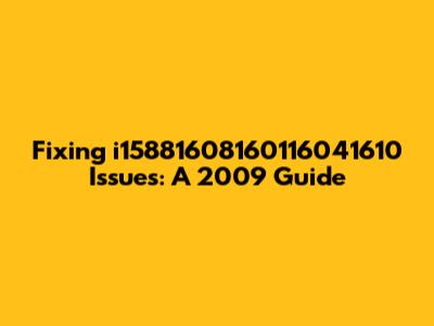 Fixing I15881608160116041610 Issues: A 2009 Guide