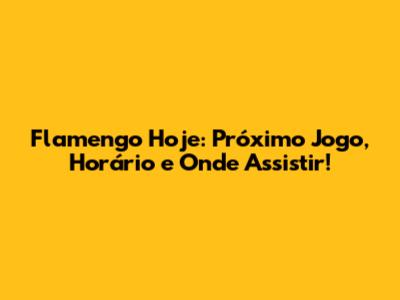 Flamengo Hoje: Próximo Jogo, Horário E Onde Assistir!