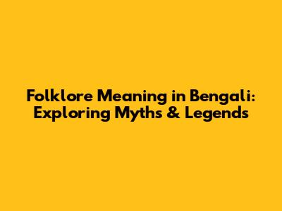 Folklore Meaning In Bengali: Exploring Myths & Legends
