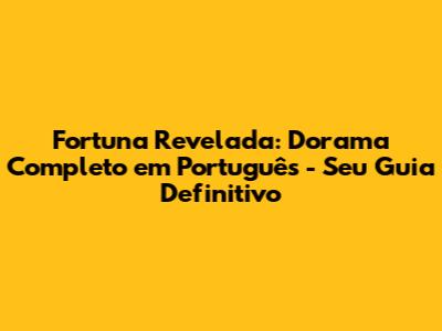 Fortuna Revelada: Dorama Completo Em Português