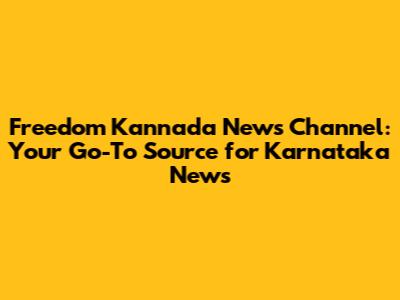 Freedom Kannada News Channel: Your Go-To Source For Karnataka News