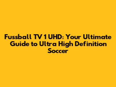 Fussball TV 1 UHD: Your Ultimate Guide To Ultra High Definition Soccer