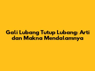 Gali Lubang Tutup Lubang: Arti Dan Makna Mendalamnya