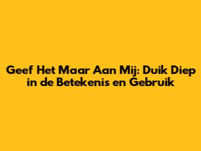 “Geef Het Maar Aan Mij” in Verschillende Contexten