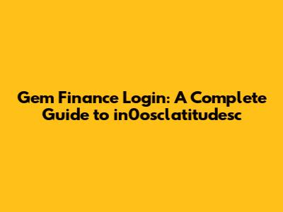 Gem Finance Login: A Complete Guide To In0osclatitudesc