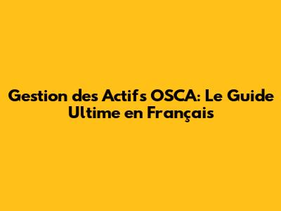 Gestion Des Actifs OSCA: Le Guide Ultime En Français