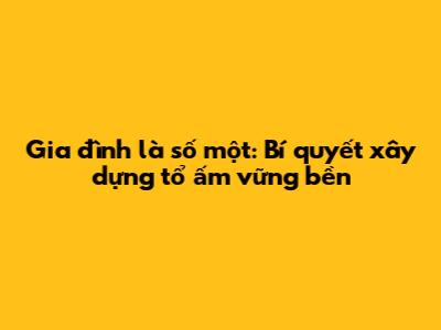 Gia Đình Là Số Một: Bí Quyết Xây Dựng Tổ Ấm Vững Bền