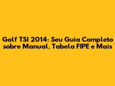 Golf TSI 2014: Guia Completo, Manual E Tabela FIPE