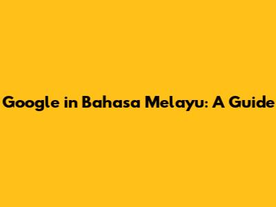 Google In Bahasa Melayu: A Guide