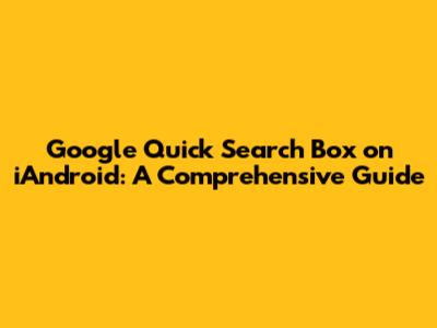 Google Quick Search Box On IAndroid: A Comprehensive Guide