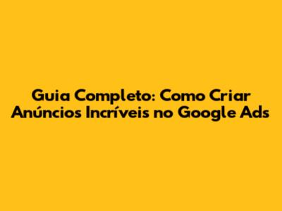 Guia Completo: Como Criar Anúncios Incríveis No Google Ads