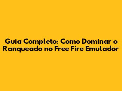 Guia Completo: Como Dominar O Ranqueado No Free Fire Emulador