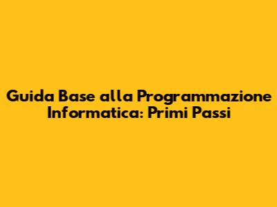 Guida Base Alla Programmazione Informatica: Primi Passi