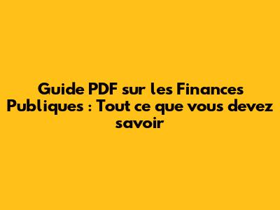 Comment un Guide PDF sur les Finances Publiques peut Vous Aider