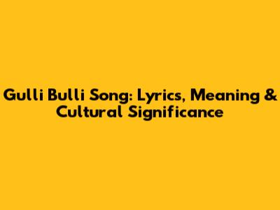 Gulli Bulli Song: Lyrics, Meaning & Cultural Significance