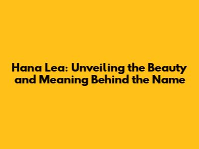 Hana Lea: Unveiling The Beauty And Meaning Behind The Name