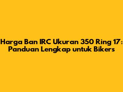 Harga ban IRC ukuran 350 ring 17 memang bervariasi tergantung pada tipe ban, kualitas, serta toko tempat Anda membeli. Namun, secara umum, harga ban IRC ukuran 350 ring 17 berkisar antara Rp150.000 hingga Rp350.000. Harga tersebut bisa berbeda-beda tergantung pada beberapa faktor, seperti: jenis ban (tubeless atau tube type), pola tapak ban, dan lokasi toko. Berikut adalah perkiraan harga beberapa tipe ban IRC ukuran 350 ring 17 yang bisa menjadi referensi: