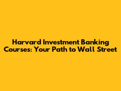 Harvard Investment Banking Courses: Your Path To Wall Street