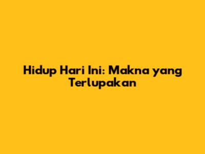 Hidup Hari Ini: Makna Yang Terlupakan
