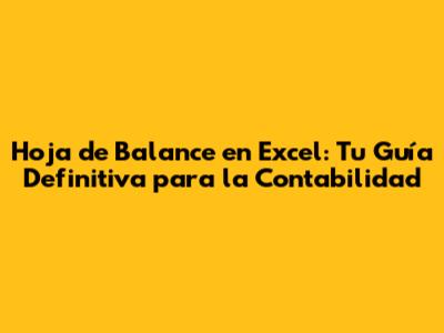 Hoja De Balance En Excel: Guía Completa