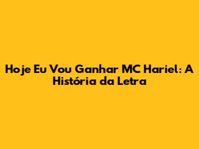 Hoje Eu Vou Ganhar MC Hariel: A História Da Letra