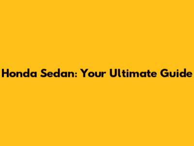Honda Sedan: Your Ultimate Guide