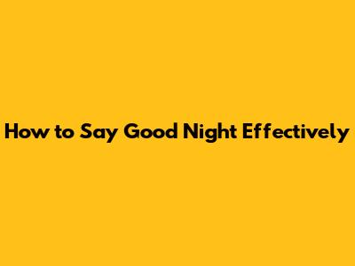How To Say Good Night Effectively