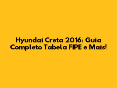 Hey guys! So, you're here because you're probably looking into the Hyundai Creta 2016 and want the lowdown on the Tabela FIPE, right? Well, you've come to the right place! We're gonna dive deep into everything you need to know about this popular SUV, from its FIPE price to its features, performance, and what to expect when you're looking to buy or sell. Buckle up, because we're about to embark on a journey through the world of the Creta 2016!
