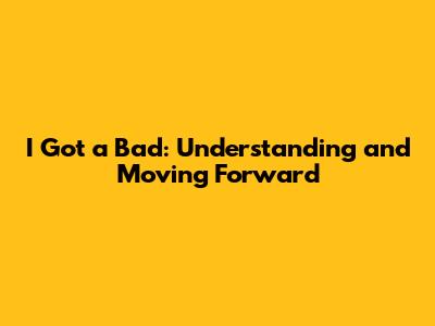 I Got A Bad: Understanding And Moving Forward