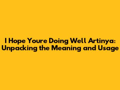 I Hope You're Doing Well Artinya: A Comprehensive Guide
