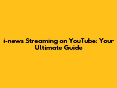 I-news Streaming On YouTube: Your Ultimate Guide