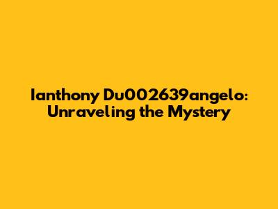 Let's dive into the world of Ianthony Du002639angelo, a name that might not immediately ring a bell for everyone, but one that holds a certain intrigue. Maybe you've stumbled upon this name in a research paper, a news article, or perhaps even a social media post. Whoever he is, I'm here to share what I've gathered about this individual and try to bring some clarity to who they are and what they might be known for. Ianthony Du002639angelo is not a household name that everyone recognizes instantly, it's worth digging a little deeper to understand the context in which the name appears. Often, such unique identifiers or handles are associated with individuals involved in very specific fields, research projects, or online communities. Understanding the history, background, and achievements associated with this name will give you a better understanding. So, if you've ever wondered about Ianthony Du002639angelo, you're in the right place. We will unravel the mystery piece by piece. I'll guide you through the available information, and together, we can figure out why this name is causing curiosity.