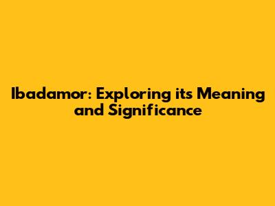 Ibadamor: Exploring Its Meaning And Significance
