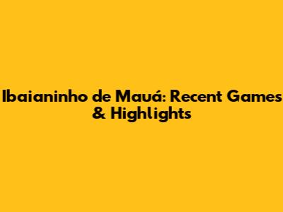 Ibaianinho De Mauá: Recent Games & Highlights