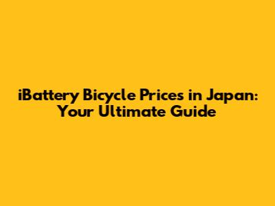 Want to snag the best iBattery bicycle prices in Japan? Here are some insider tips: