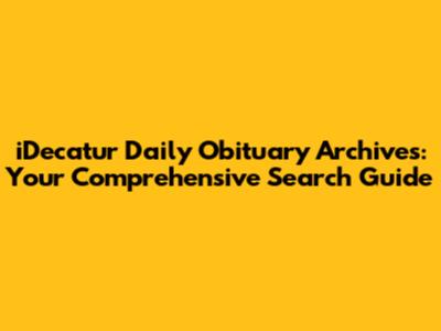 Hey guys! Are you trying to find information from the iDecatur Daily obituary archives? This guide will give you all the tips and tricks you need to conduct a successful search. Whether you're tracing your family history, researching a local figure, or simply trying to learn more about someone who made an impact on the community, navigating obituary archives can sometimes feel like a daunting task. But don't worry, we're here to help you break it down step-by-step, making the process much smoother and more rewarding. So, let's dive in and explore the best ways to access and utilize the iDecatur Daily's obituary archives!